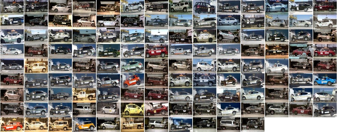 A montage of the vehicles that have received a rating of 2 for front crash driver-side protection:
